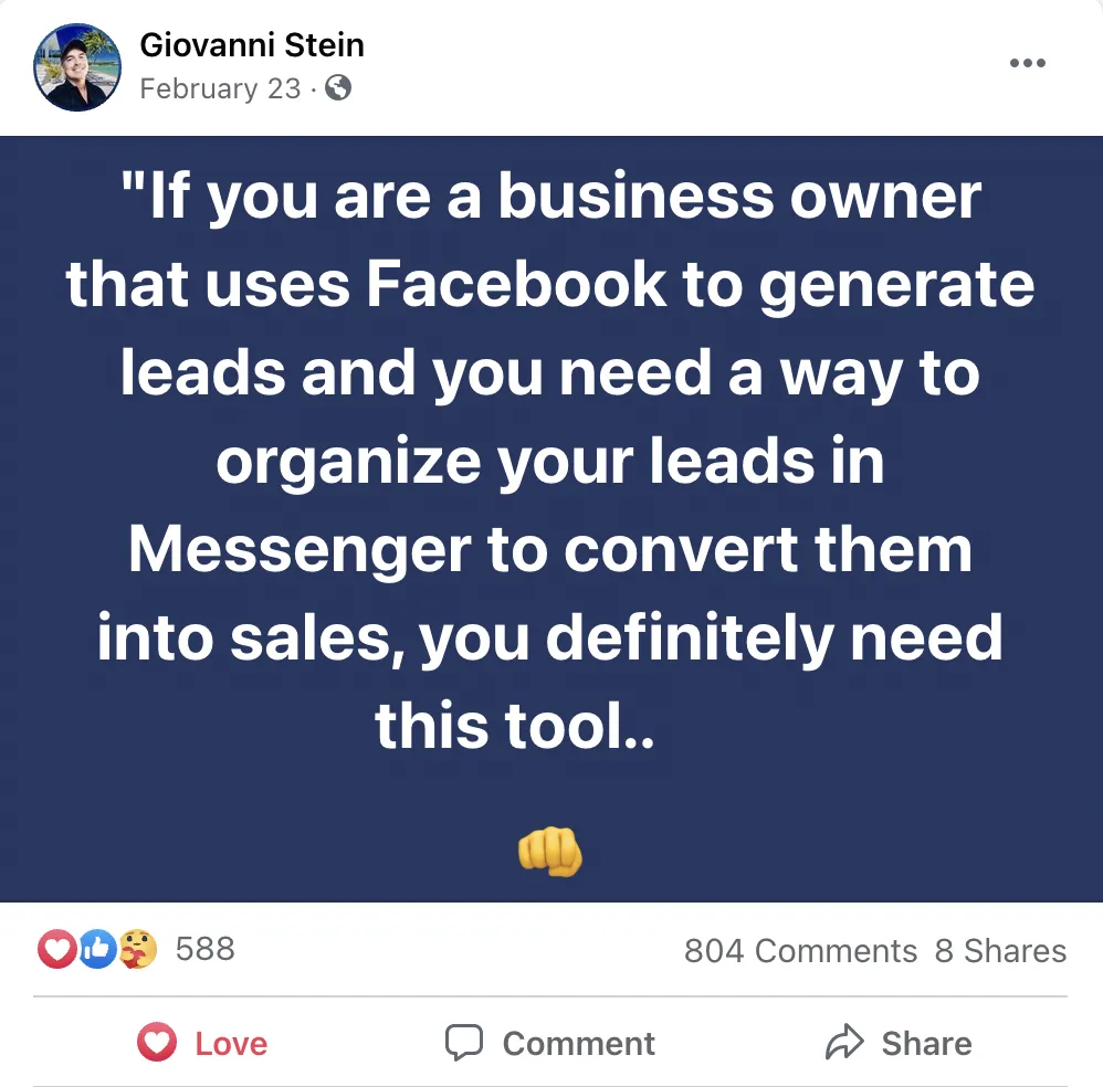 Sort your leads based on a specific tag inside your messenger, making the follow-up extremely easy!